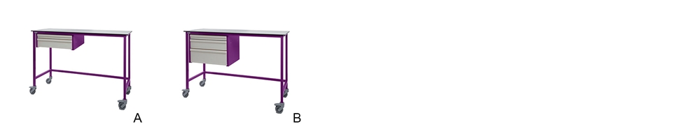 Structure et bloc tiroir en acier avec revêtement peinture époxy (26 couleurs au choix).